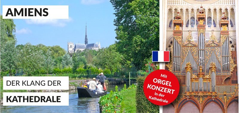 Im Schatten der grandiosen Baukunst der Gotik erleben Sie eine wunderbare Stadt mit großer Geschichte und stimmungsvoller Atmosphäre! Sie wohnen vis-a-vis der Kathedrale, erleben die digitale Lichtershow auf deren Fassade, ein exklusives Orgelkonzert, die Puntkahnfahrt durch die „schwimmenden Gärten“ sowie das Tal der Maas und der Somme.