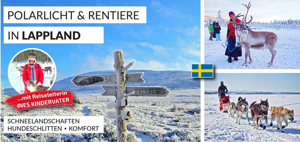 Gemeinsam mit Ihrer Reiseleitung Ines Kindervater besuchen Sie den Polarkreis und eine Rentierfarm, machen einen Ausflug mit dem Hundeschlitten und können mit etwas Glück auch das traumhafte Spiel des Polarlichtes erleben!