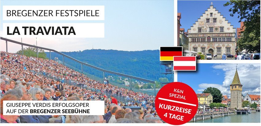 Der große Opernklassiker über eine Liebe gegen die Zeit und alle Konventionen eroberte um 1860 in kürzester Zeit die Bühnen der Welt. Unser bewährtes Reisekonzept bietet Ihnen den Besuch dieses Opernereignisses als attraktive Kurzreise, die Ihnen das musikalische Erlebnis ebenso möglich macht, wie den Besuch Lindaus und Freizeit in Mellau.